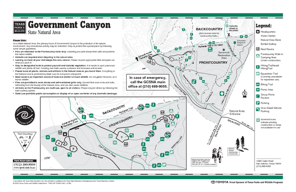 Fullsize Government Canyon, Texas State Park Facility and Trail Map